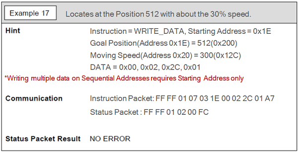 NOTE : Status Packet will not be returned if Broadcast ID(0xFE) is used.
